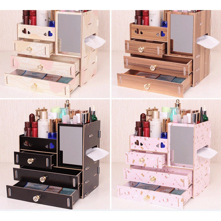🌸 KỆ GỖ LẮP GHÉP 3 TẦNG ĐỰNG MỸ PHẨM CÓ GƯƠNG🍀 Hộp đựng trang sức mỹ phẩm 4 tầng có gương là sản phẩm trang trí, làm đẹp bàn trang điểm của bạn mới nhất 2018 với các tính năng mới. Kệ đựng có các ngăn kéo chứa đồ, vật dụng mỹ phẩm, trang sức kèm cả gương soi nên vô cùng tiện dụng và đẹp mắt.