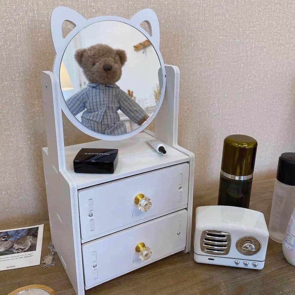 Kệ Mỹ Phẩm, Tủ Đựng Mỹ Phẩm💄 Mini Có Gương Trang Điểm Hình Tai Mèo👄 Dễ Thương, Cute📌