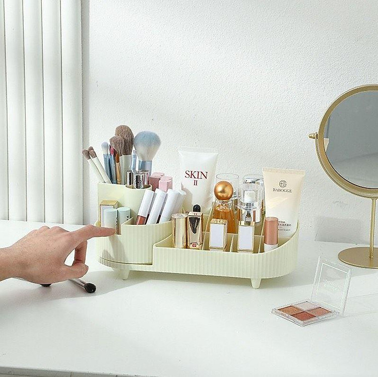 Kệ Mỹ Phẩm Xoay 360 Độ Để Bàn Có Nhiều Ngăn Đa Dụng