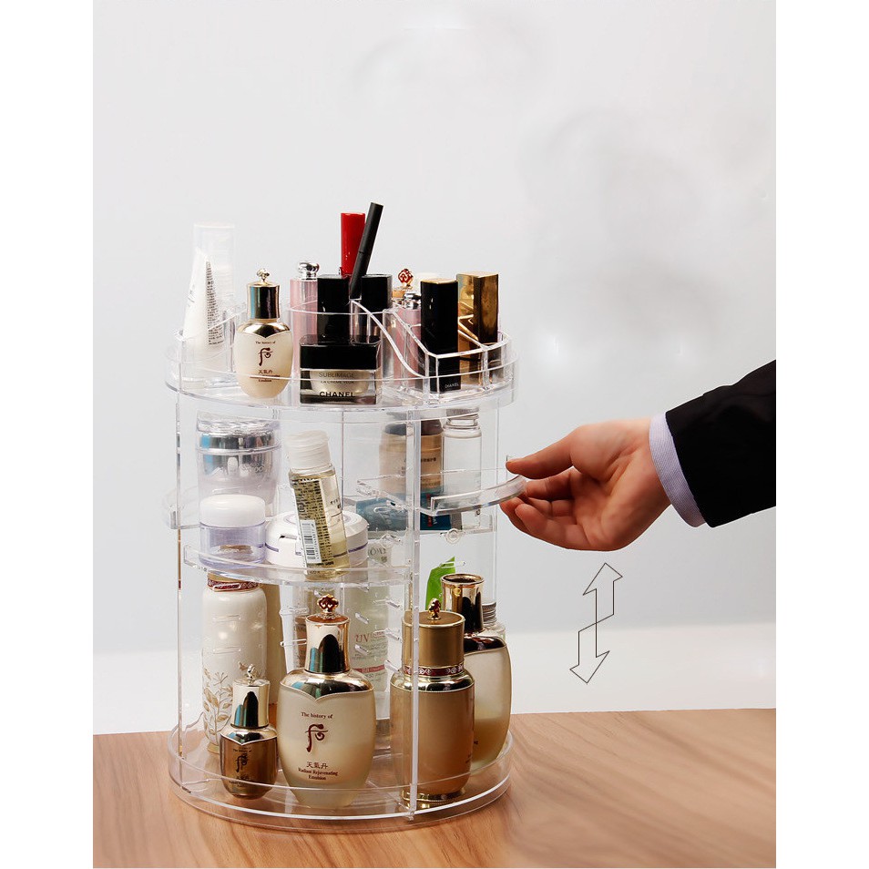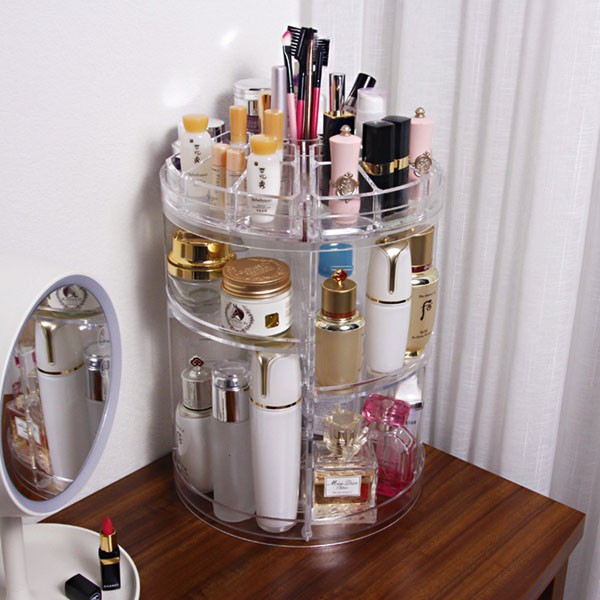 Kệ Mỹ Phẩm, Trang điểm Xoay 360 Độ Mica 7🍀Chị em nhà mình ai chẳng có mỹ phẩm, nước hoa đúng k ạ ! Mà mua thì nhiều vô kể và k bao giờ là đủ ! Thế nên cái khay to , rộng, đựng ntn thì quá gọn luôn! Tiện nhất là xoay đc 360 độ để tìm đồ 1 cách đơn giản nhất ! Thiết kế cực thông minh! Tuỳ chỉnh chiều cao từng tầng phù hợp từng loại mỹ phẩm nha