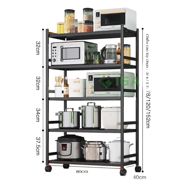 Giới thiệu Kệ nhà bếp đa năng IGA khung inox 304 sơn đen tĩnh điện cao cấp
