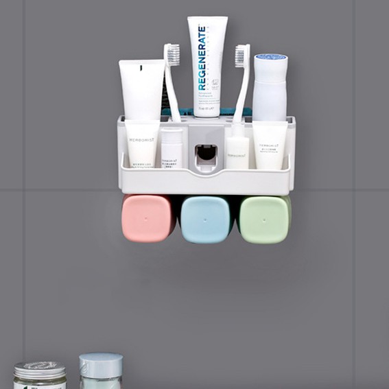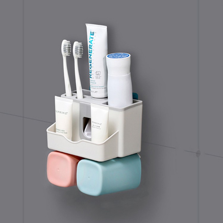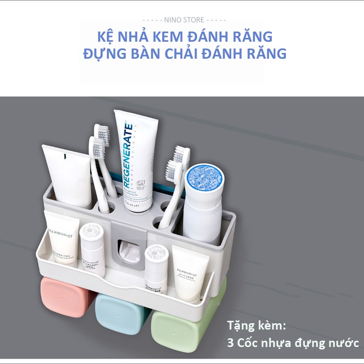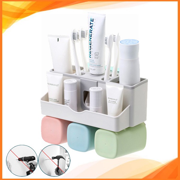 Kệ nhả kem đánh răng, đựng bàn chải treo tường (Tặng kèm 2 cốc nước và miếng dán cường lực)