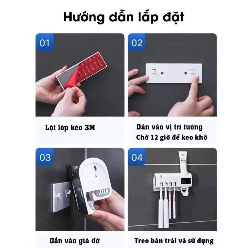 Giới thiệu Kệ Nhả Kem Đánh Răng Tự Động Kết Hợp Giá Treo Bàn Chải Có Mắt Cảm Ứng Hồng Ngoại Khử 99% Vi Khuẩn