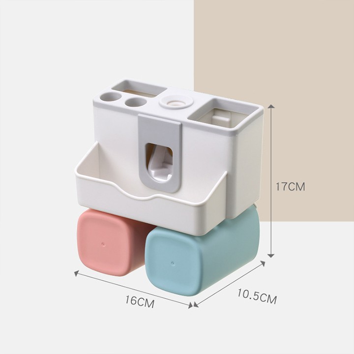 Kệ Nhả Kem Đánh Răng Tự Động (Tặng Kèm Cốc) - Mặt Dính Hút Chân Không Chắc Chắn Dễ Dàng Lắp Đặt Mà Không Cần Khoan Vít