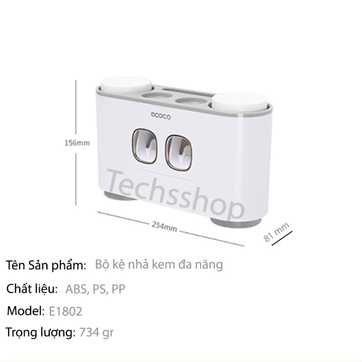 Bộ kệ nhả kem cao cấp đến từ thương hiệu ecoco bạn sẽ không thể bỏ qua với mẫu mã nhỏ gọn và màu sắc cùng chất liệu sang trọng đem đến không gian phòng tắm thêm hiện đại. Với cơ cấu nhả kem tự động và khe để các đồ vật dụng trong nhà tắm, có khung chứa cốc tiện lợi và đa năng1. Những thiết kế và tính năng nổi bật của sản phẩm