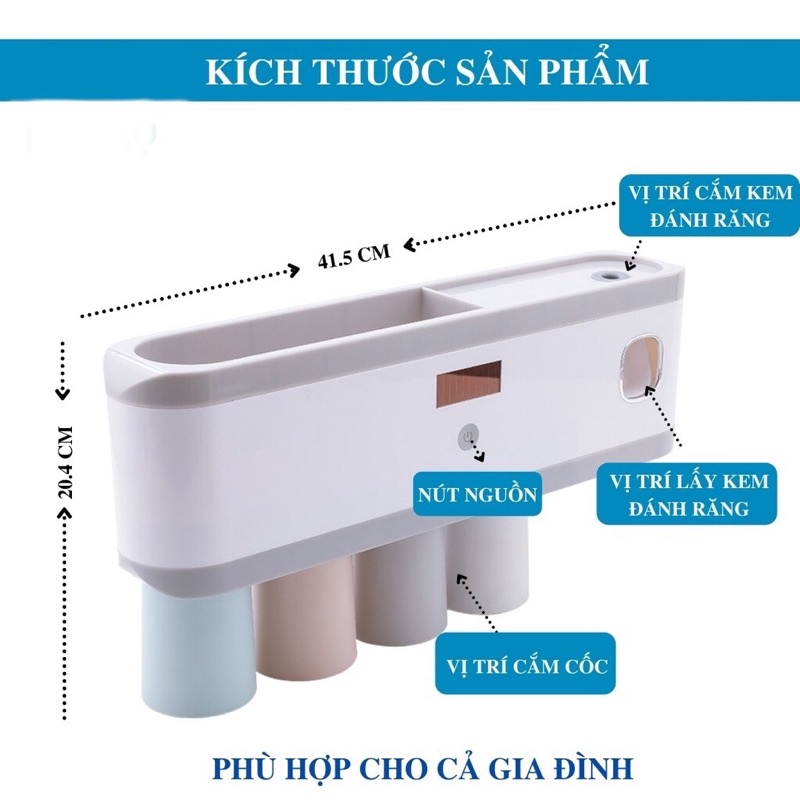 Kệ nhả kem tự động thông minh có tia UV diệt khuẩn bàn trải đánh răng tặng kèm cốc và miếng dính