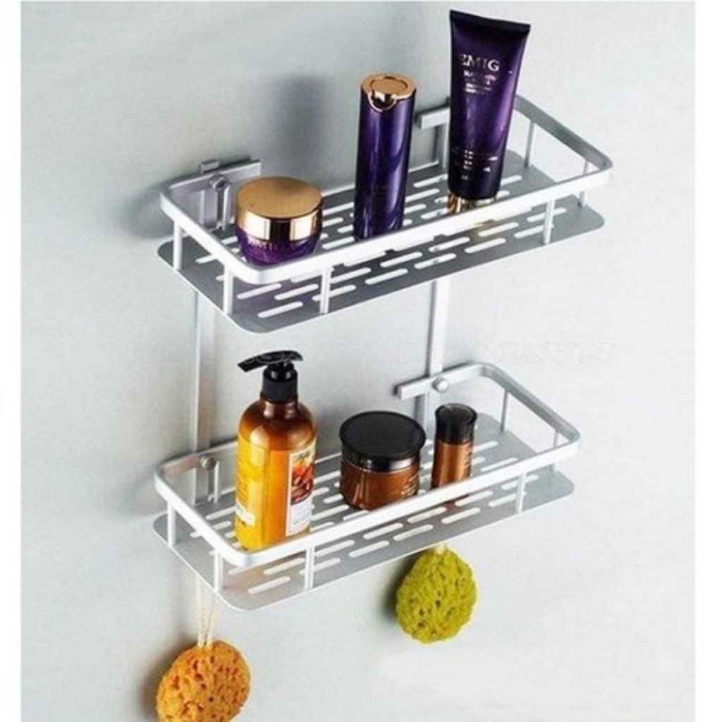 ❷ Giá để đồ 2 tầng có khả năng thoát nước nhanh giúp các vật dụng bên trên luôn khô ráo, sạch sẽ. Bạn có thể để tất cả các loại dầu gội, sữa tắm, mỹ phẩm… mà không lo thiếu chỗ.