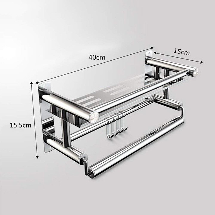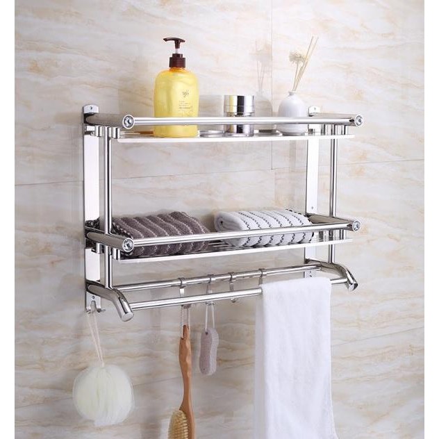 - Kệ treo khăn 2 tầng inox giúp cho không gian phòng tắm nhà bạn thêm sang trọng.