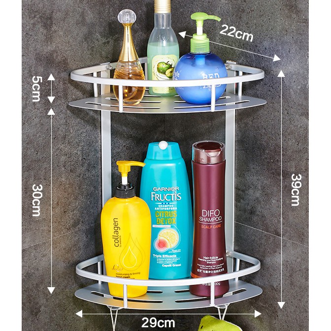 ❆ Giá treo đồ đa năng được làm từ chất liệu hợp kim nhôm cao cấp luôn sáng bóng, không hoen gỉ, bong tróc trong môi trường ẩm, vì thế bạn có thể thoải mái để các vật dụng trong phòng tắm.❆ Giá để đồ 2 tầng có khả năng thoát nước nhanh giúp các vật dụng bên trên luôn khô ráo, sạch sẽ. Bạn có thể để tất cả các loại dầu gội, sữa tắm, mỹ phẩm… mà không lo thiếu chỗ.