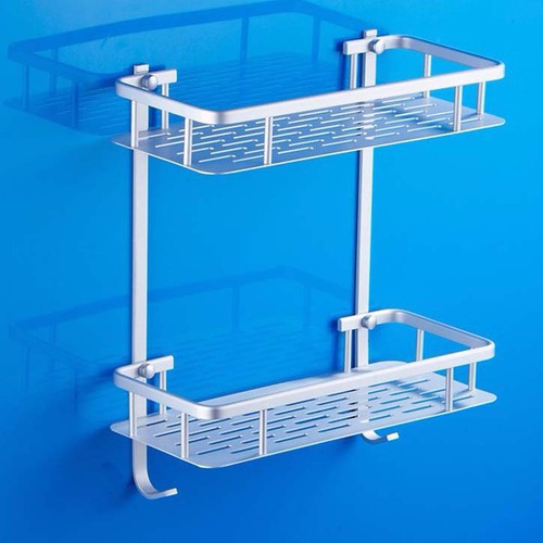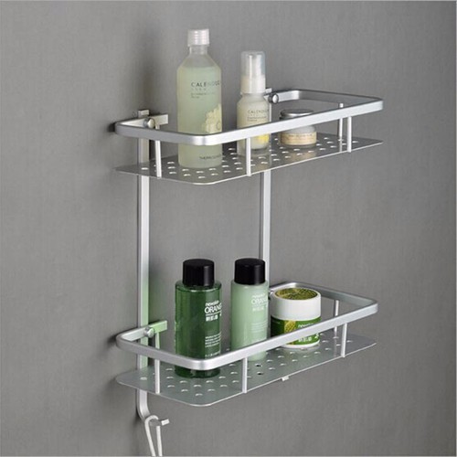 Kệ nhà tắm 2 tầng dùng để đựng đồ dùng nhà tắm như xà phòng, nước hoa...Thiết kế 2 tầng cùng 2 móc treo tiện lợi giúp bạn treo được nhiều đồ hơn.