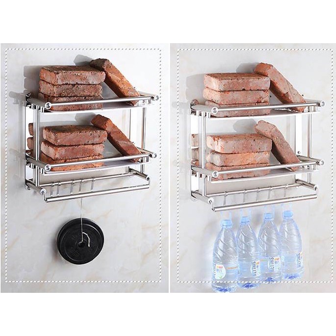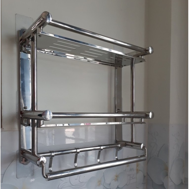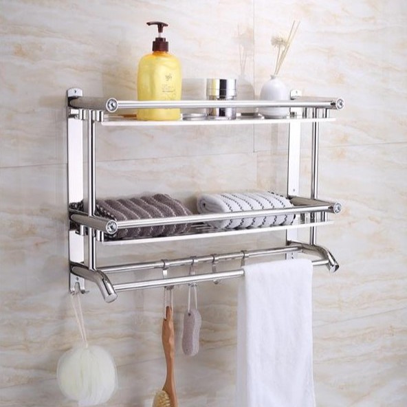- Kệ treo khăn 2 tầng inox giúp cho không gian phòng tắm nhà bạn thêm sang trọng.