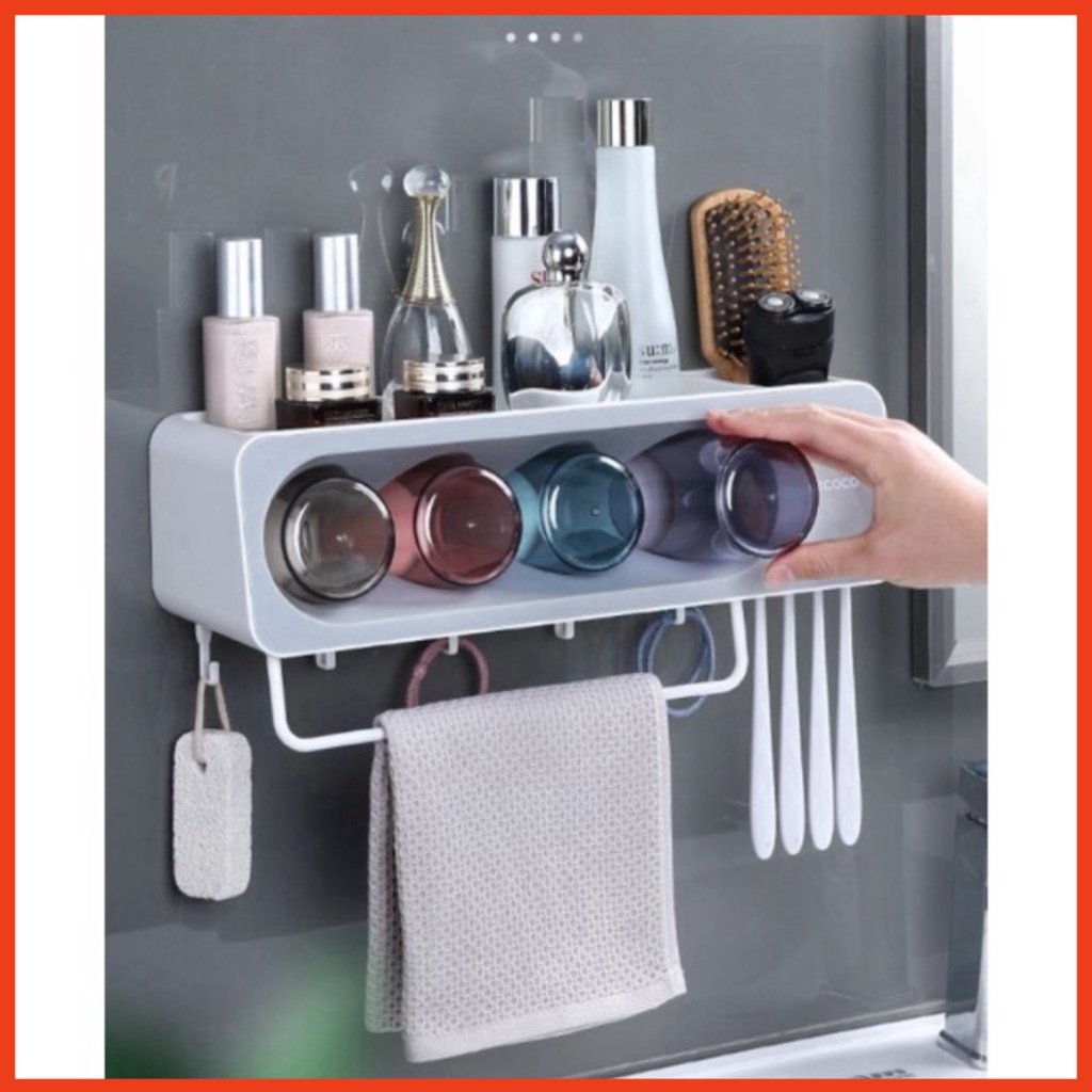 Nhà cửa & Đời sống > Đồ dùng phòng tắm > Kệ đựng bàn chải, kệ nhả kem đánh răng || Kệ nhà tắm, cắm chải kèm 4 cốc và thanh treo khăn ECOCO 2113 GDTACòn hàng