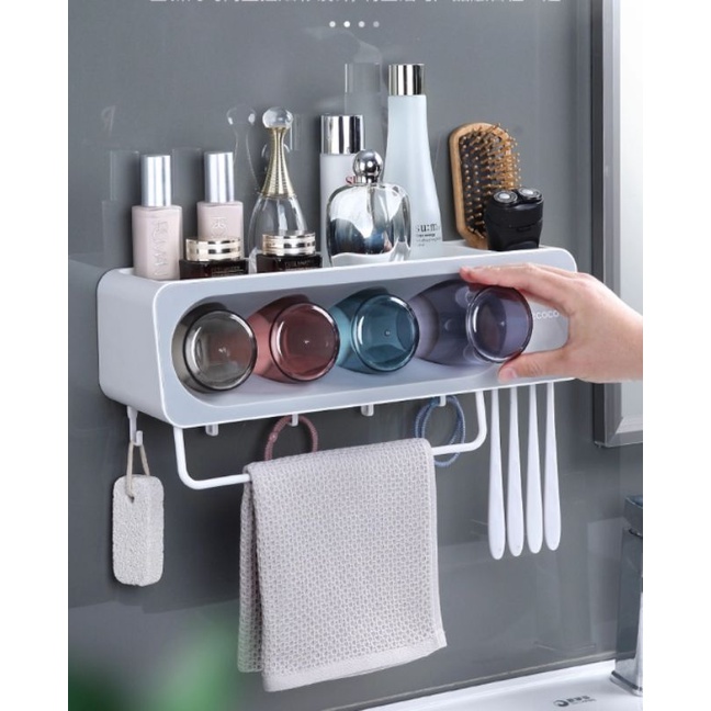 Nhà cửa & Đời sống > Đồ dùng phòng tắm > Kệ đựng bàn chải, kệ nhả kem đánh răng || Kệ nhà tắm, cắm chải kèm 4 cốc và thanh treo khăn ECOCO 2113Còn hàng