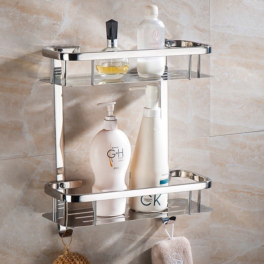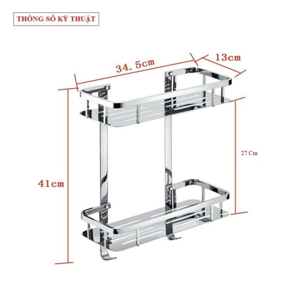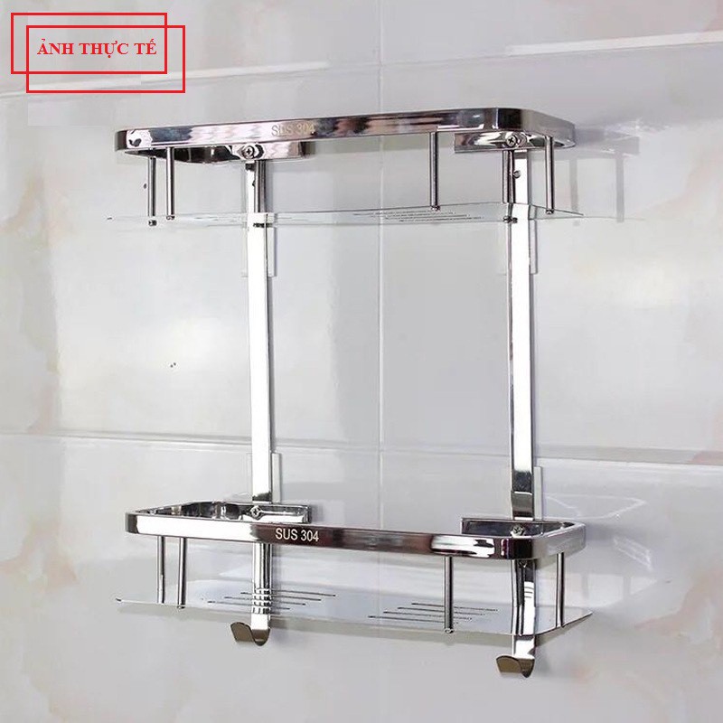 Kệ Nhà Tắm Chữ Nhật 2 Tầng Inox SUS 304 Hàng Xịn