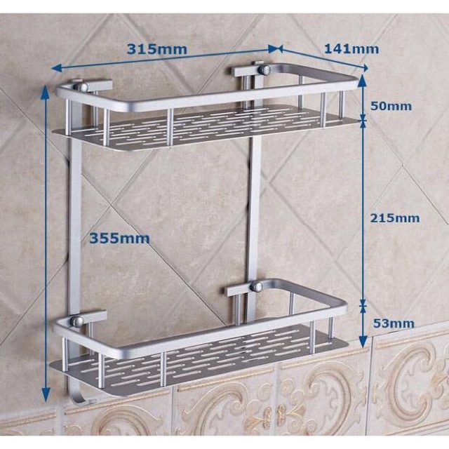 Kệ chất liệu nhôm hợp kim chống rỉ sét , kiểu dáng 2 tầng như hình ảnh .Giúp đựng các vật dụng trong nhà tắm gọn gàng hơn , chịu lực tốt .
