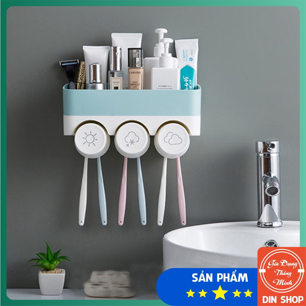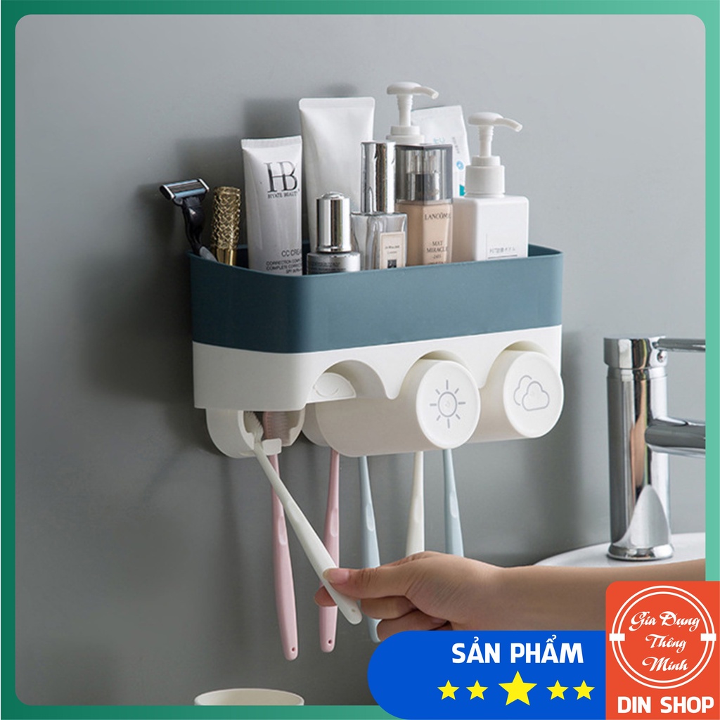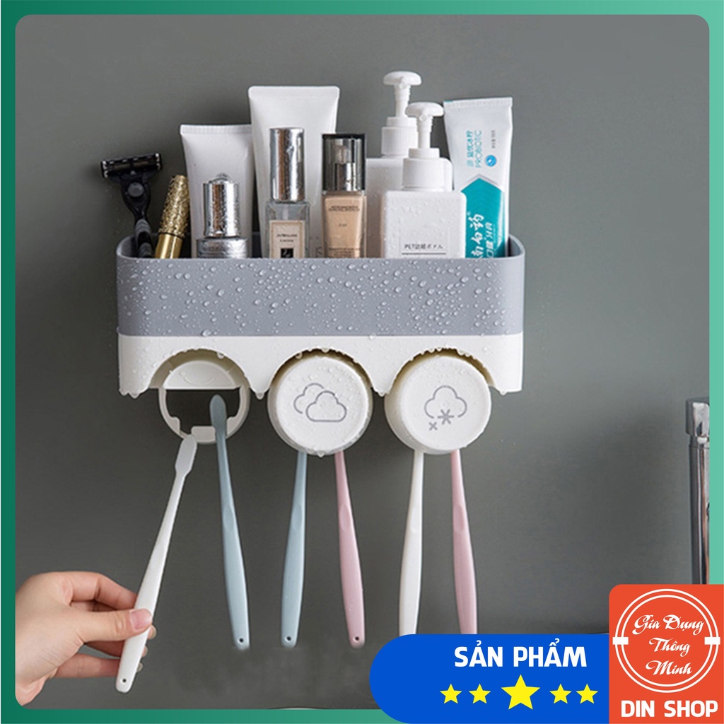 Kệ Nhà Tắm Đa Năng GIÁ ĐỂ MỸ PHẨM Kệ Để Đồ Phòng Tắm Dán Tường Đa Năng Đựng Bàn Chải Kem Đánh Răng + 3 Cốc Xịn