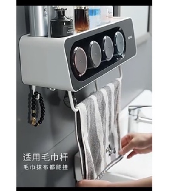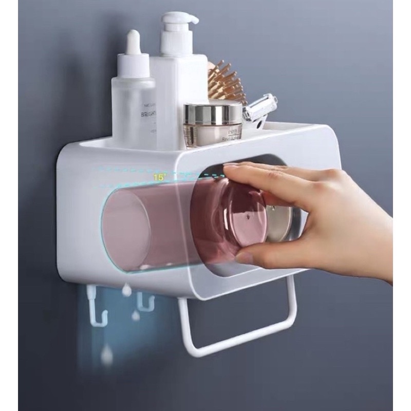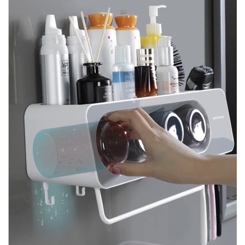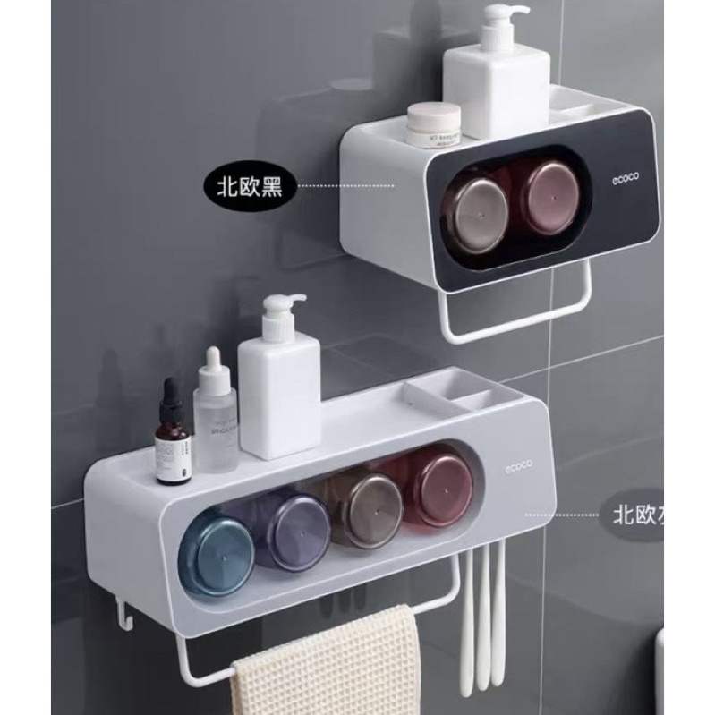 Kệ nhà tắm đa năng kèm cốc ecoco, kệ cắm bàn chải kèm móc treo đồ và khăn mặt