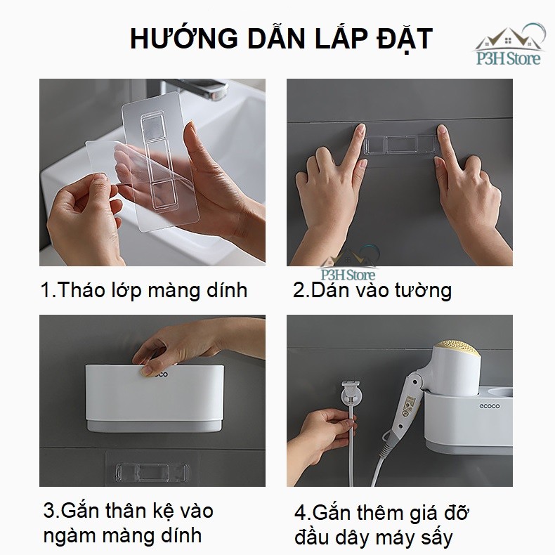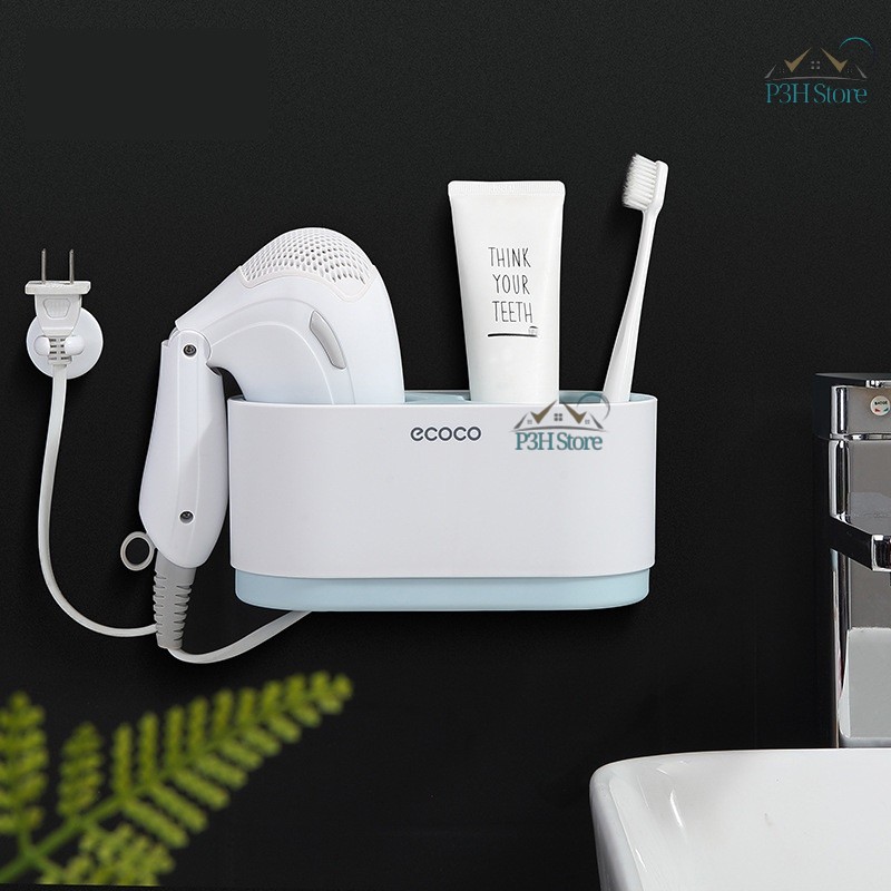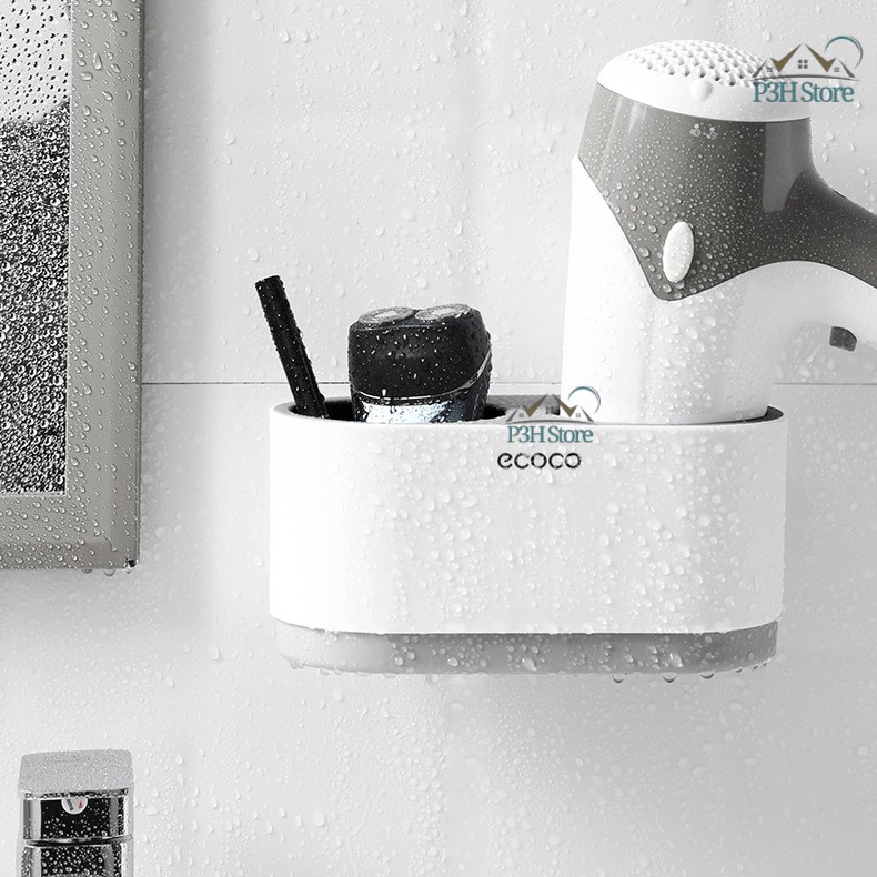 Kệ nhà tắm đa năng không cần khoan tường có ngăn chứa máy sấy tóc BR002Kích thước: (DàixRộngxCao) 19cm x 10.5cm x 9cm