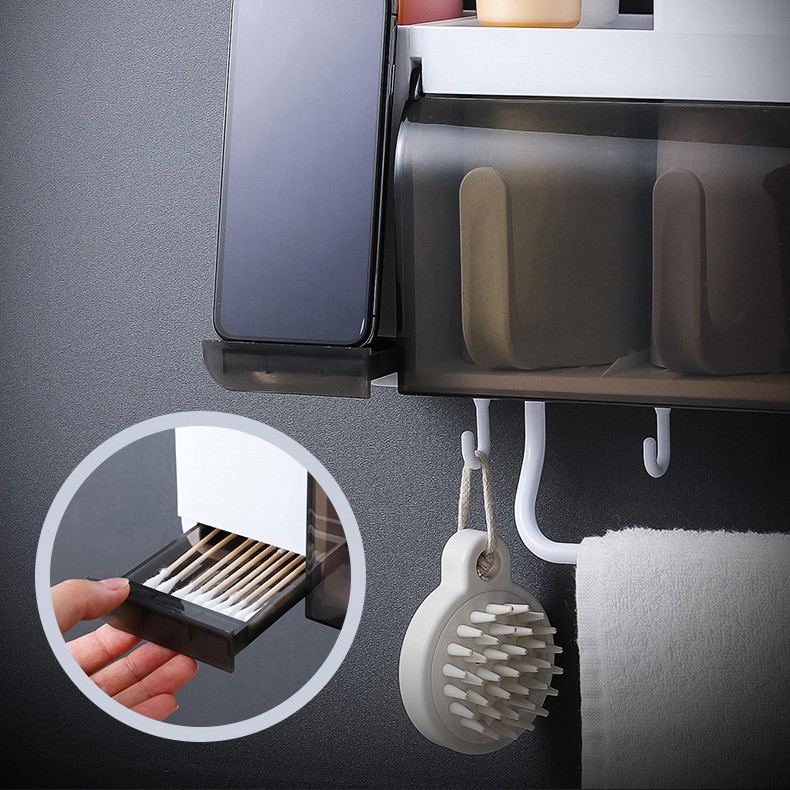 Kệ nhà tắm đa năng thiết kế đựng bàn chải đánh, kem đánh răng, tặng 2 cốc