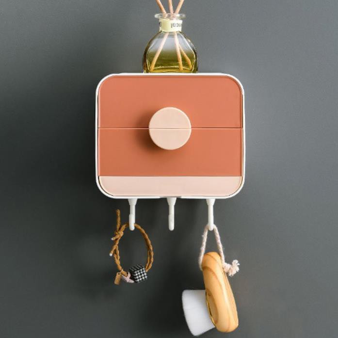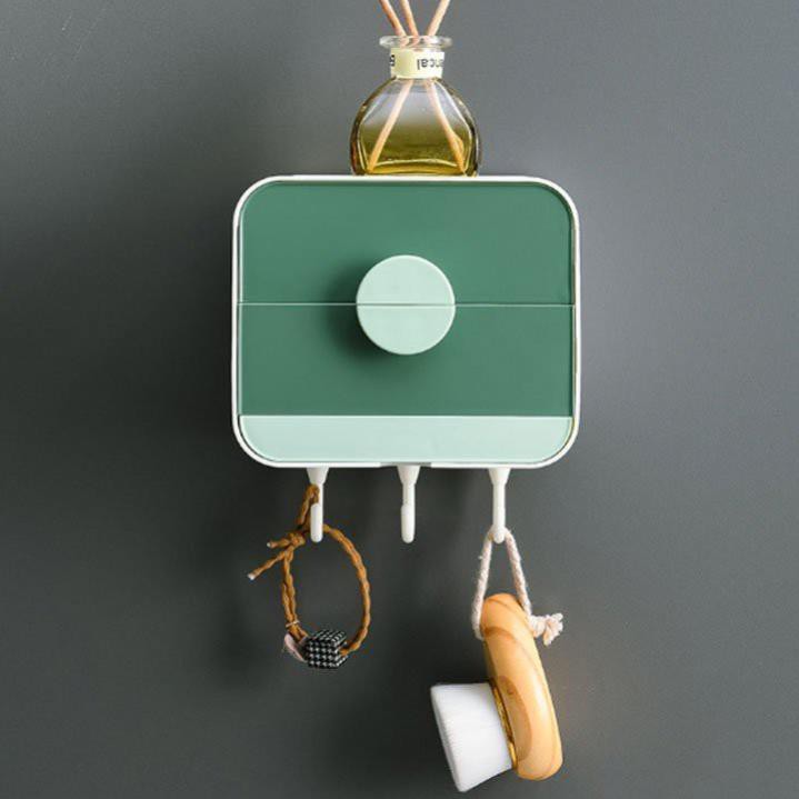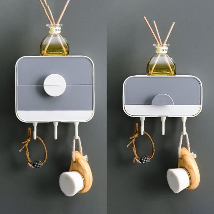 Khay đựng xà bông 2 lớp cao cấp dán tường Hộp đựng xà phòng dính tường có móc treo tiện dụng• Miếng dán keo siêu chắc chắn