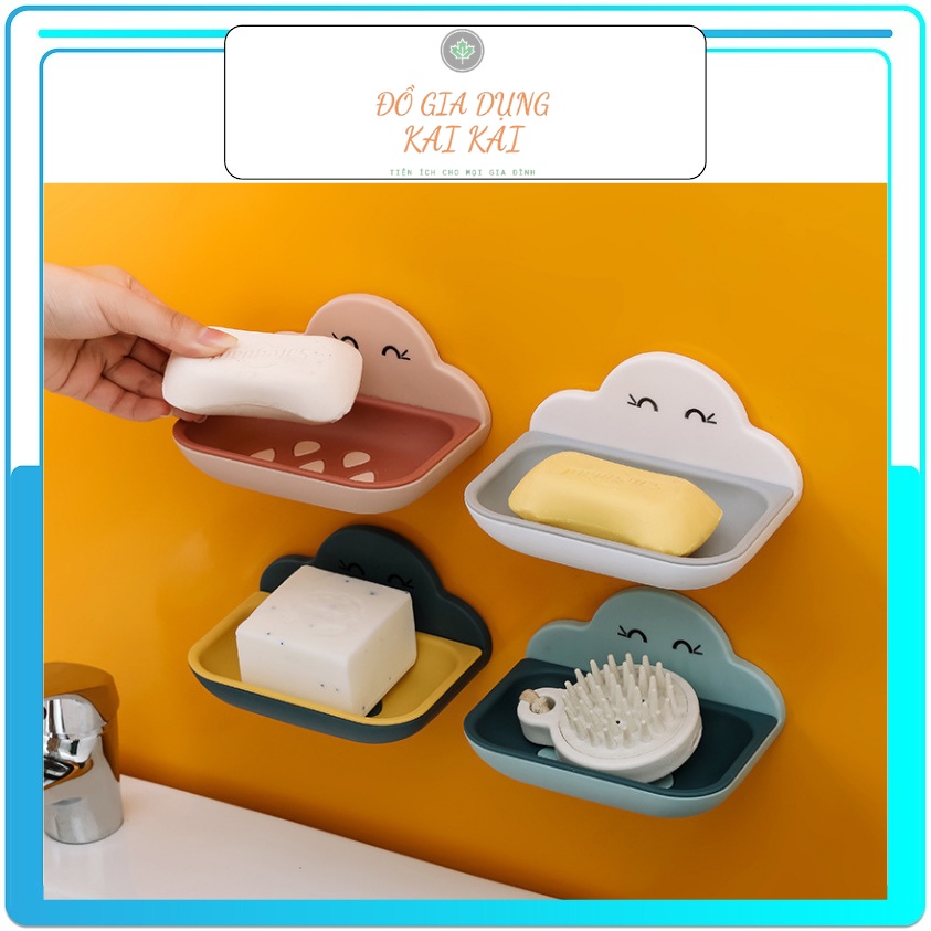 Khay đựng xà bông cao cấp hình đám mây dễ thương, Kệ đựng xà phòng 2 lớp dán tường siêu chắc chắn ĐỒ GIA DỤNG KAI KAI