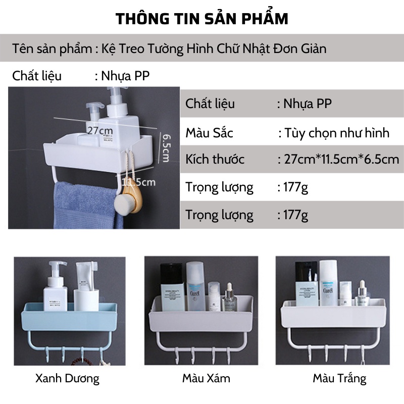 - Kích thước: Kệ hình chữ nhật: 27*11.5*6.5cm