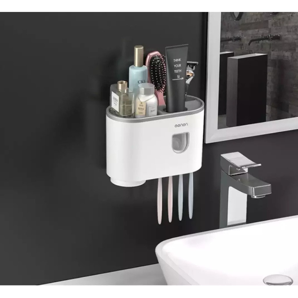 Bộ Nhả Kem Đánh Răng Tự Động OENON, Kệ Để Đồ Nhà Tắm Cao Cấp Kèm Cốc Hút Từ Tính (Tặng Kèm 2 Miếng Dán)