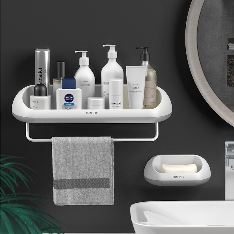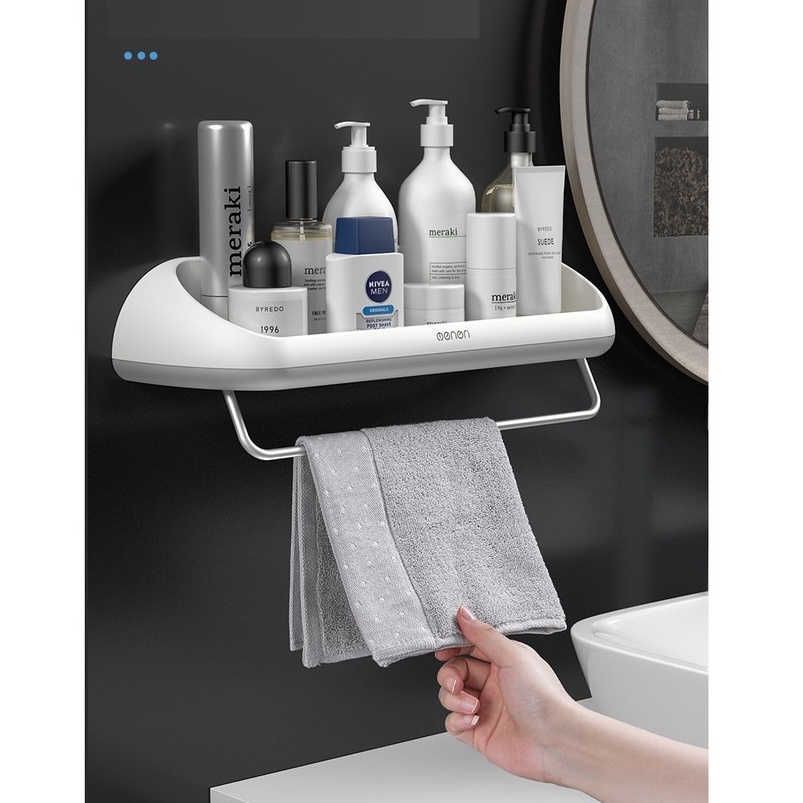 Nhà cửa & Đời sống > Đồ dùng phòng tắm > Kệ để đồ phòng tắm || Kệ Nhà Tắm Để Đồ Kèm Thanh Treo Khăn OENON cao cấp lắp đặt dán tường không cần khoanCòn hàng