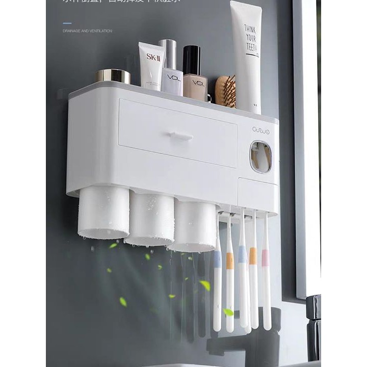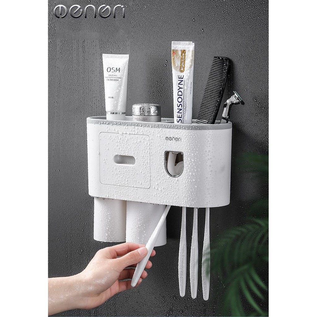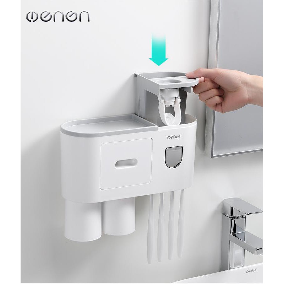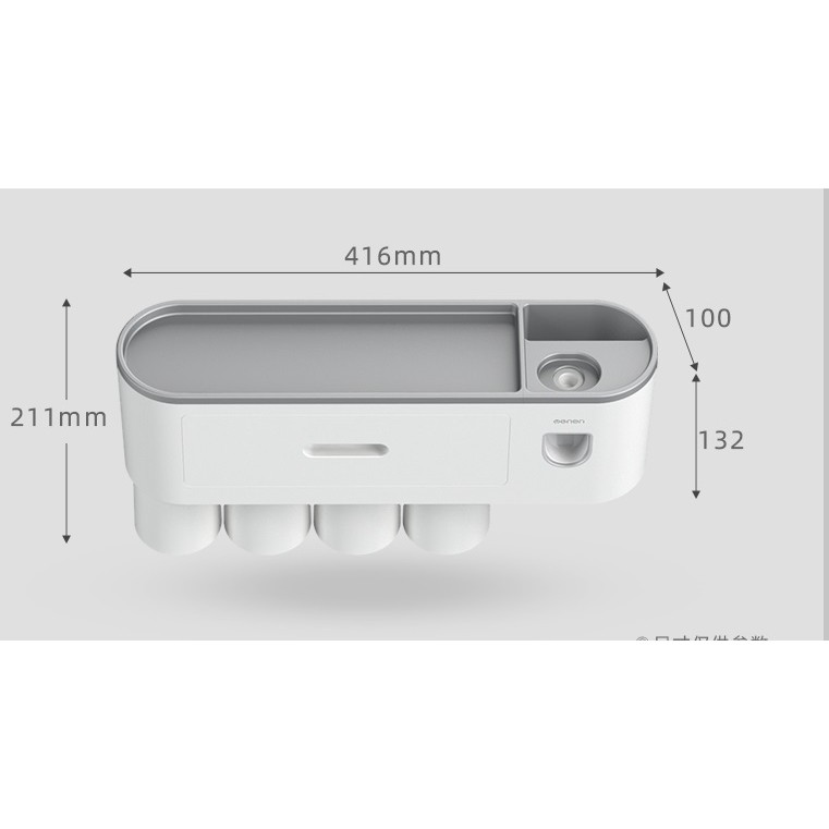 - Sản phẩm gồm: 1 Kệ nhà tắm tích hợp chức năng lấy kem tự động + Cốc hút từ tính + miếng dán tường