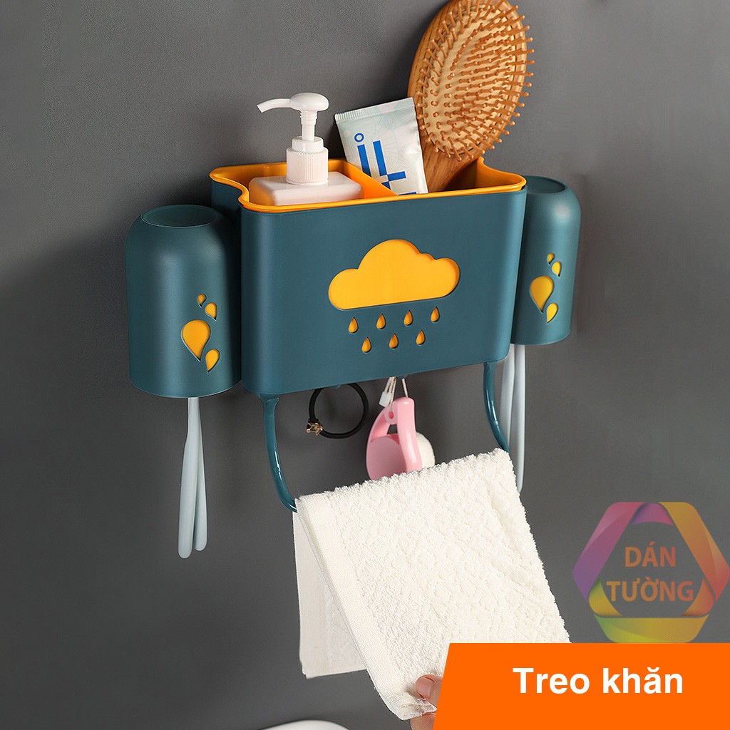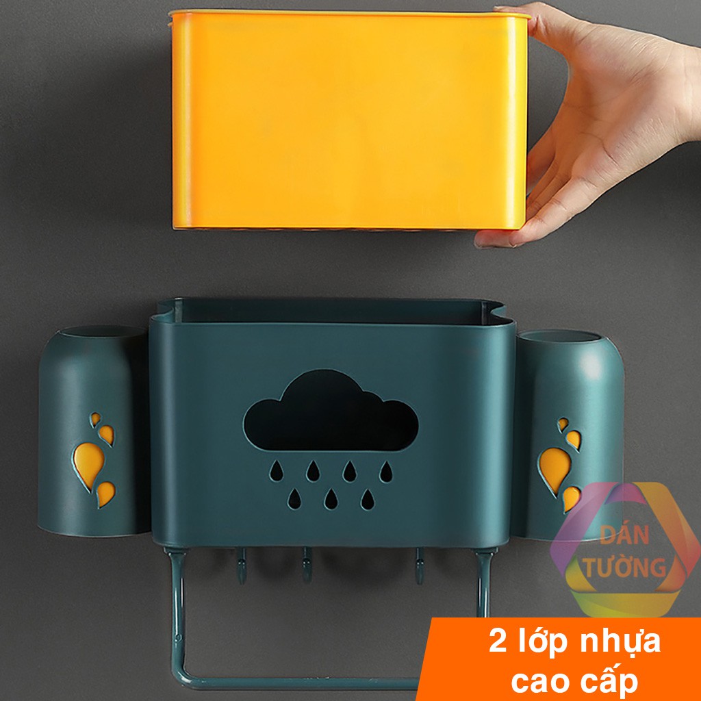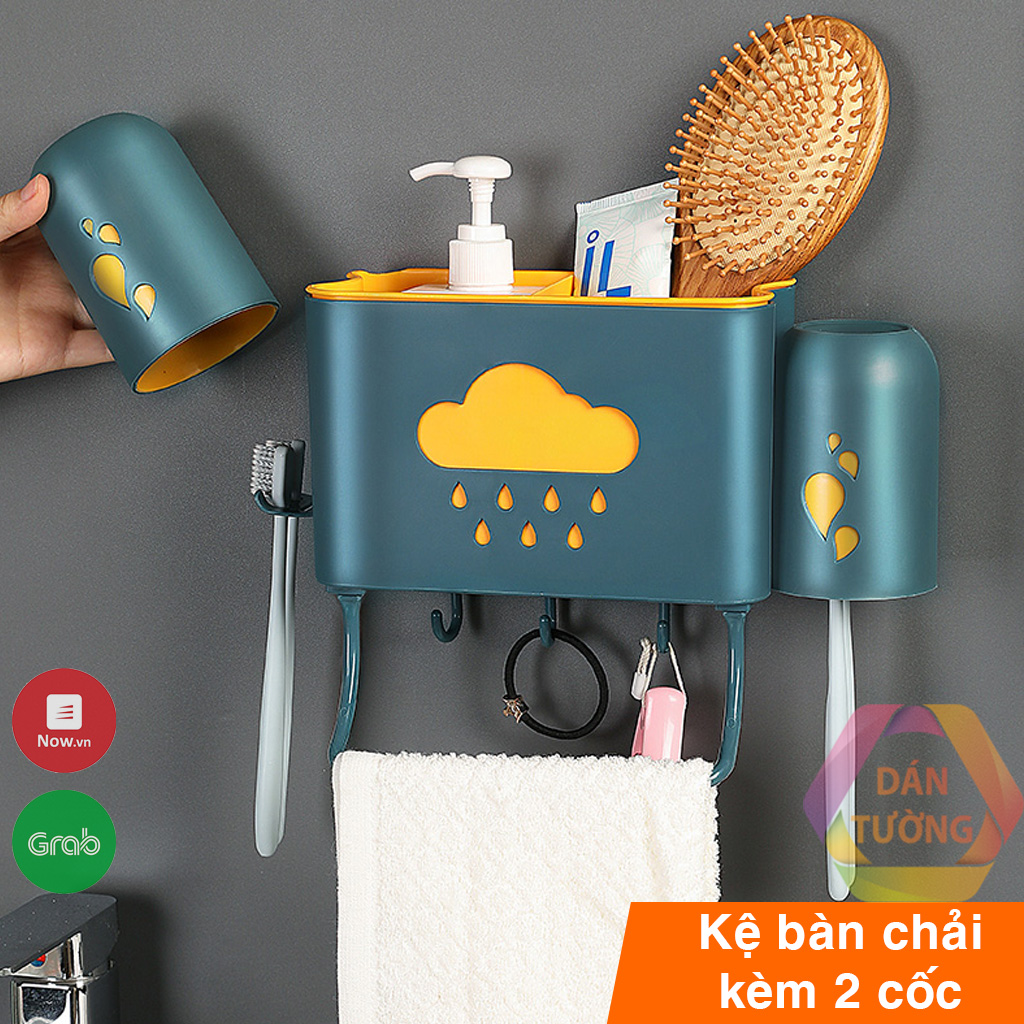 Kệ đựng bàn chải đánh răng dán tường nhà tắm MDT, giá kệ để đồ phòng tắm đa năng kèm 2 cốc đánh răng - K189