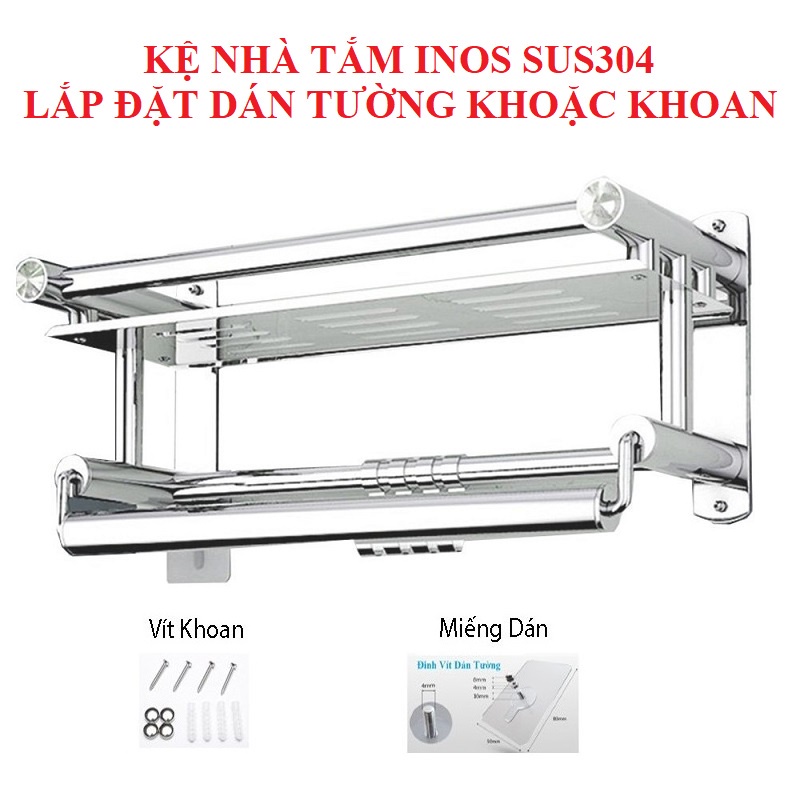 Kệ Nhà Tắm, Giá Treo Khăn Nhà Tắm Inox Dán Tường, Để Đồ Tiện Lợi
