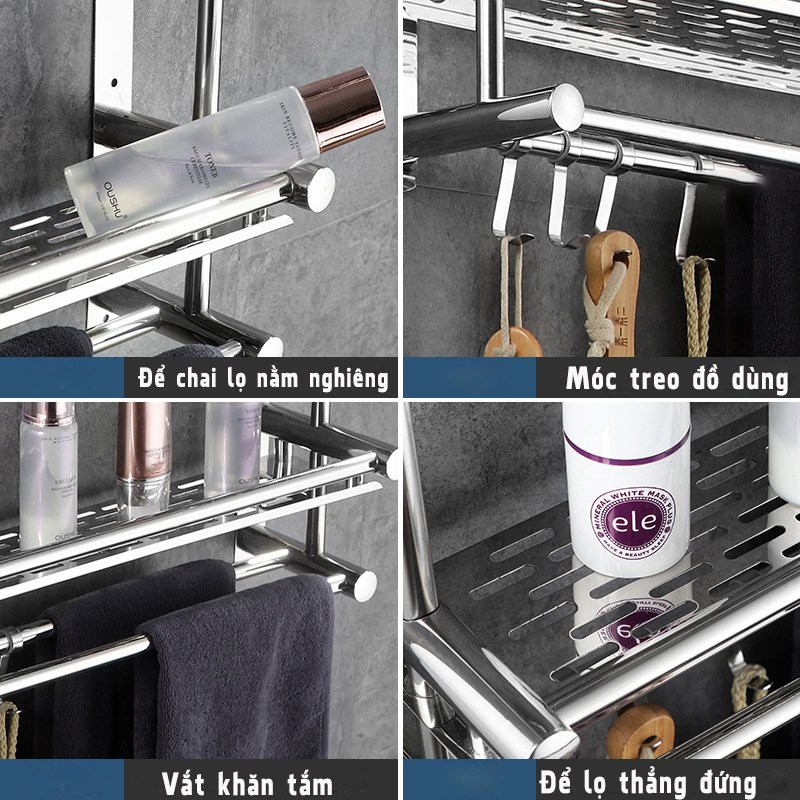 Kệ Nhà Tắm, Giá Treo Khăn Nhà Tắm, Để Đồ Dùng Inox Khô ng Gỉ Đa Năng Gắn Tường