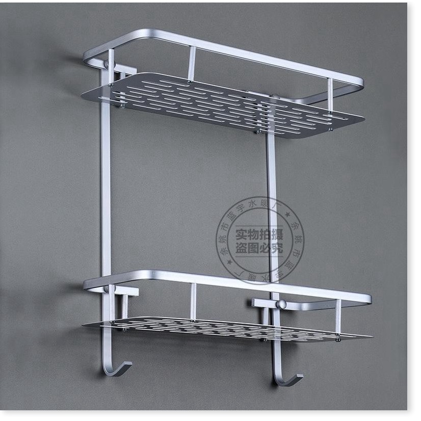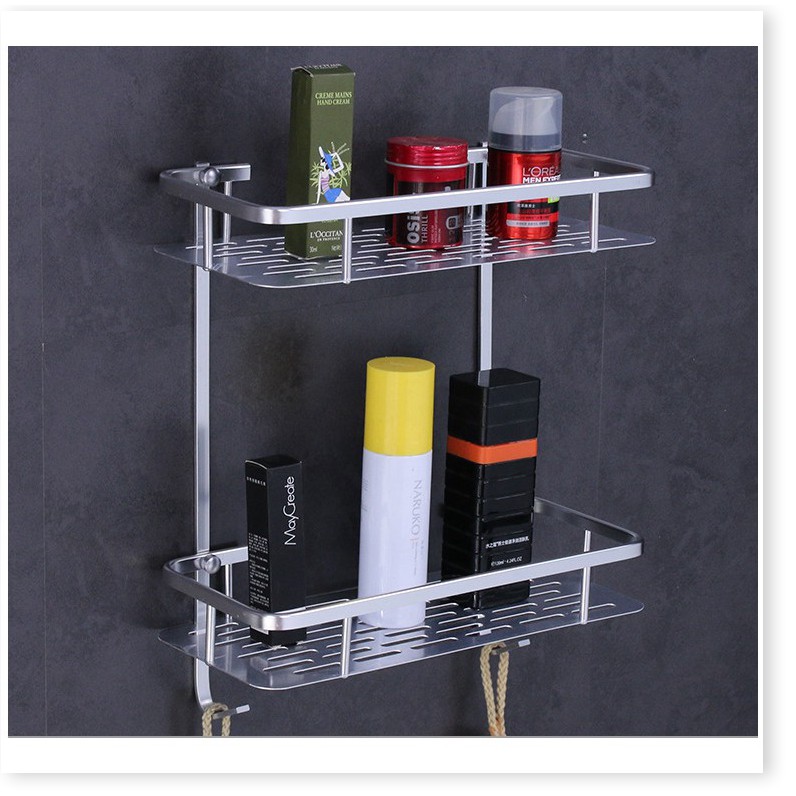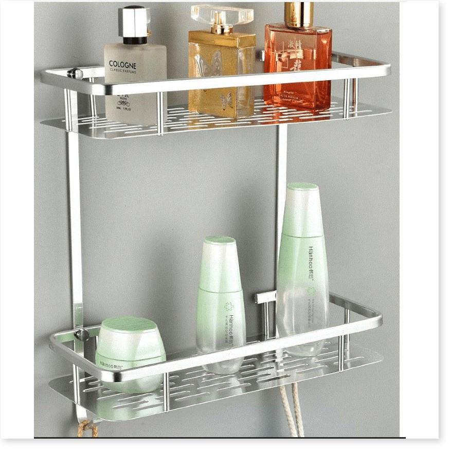 🌈 Kệ nhà tắm 2 tầng có 2 móc dùng để đựng đồ dùng nhà tắm như xà phòng, nước hoa...Thiết kế 2 tầng cùng 2 móc treo tiện lợi giúp bạn treo được nhiều đồ hơn.