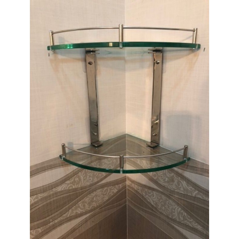 Kệ nhà tắm INOX 304 - Kệ kiếng để xà bông phòng tắm góc 2 tầng