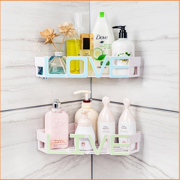 Nhà cửa & Đời sống > Đồ dùng phòng tắm > Kệ để đồ phòng tắm || Kệ nhà tắm GOOD MOOD - khay nhựa trang trí LIVE LOVE dán tường chịu lực có móc treoCòn hàng