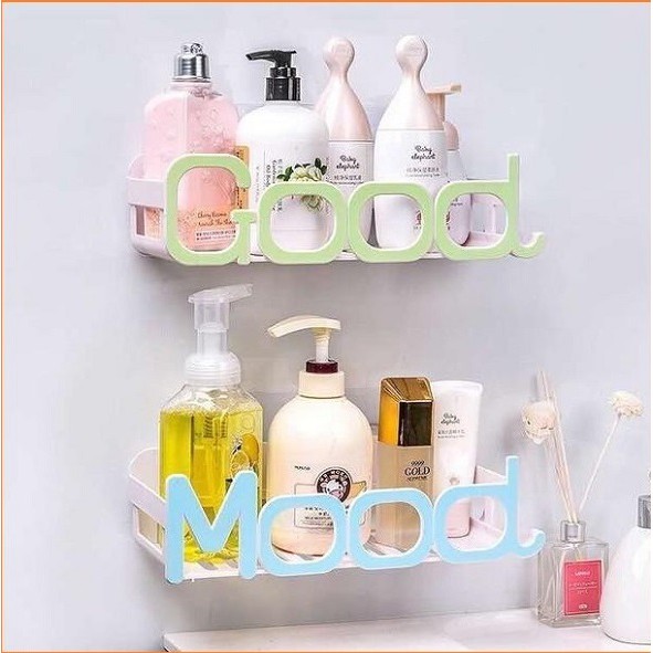 Giới thiệu Kệ nhà tắm GOOD MOOD - khay nhựa trang trí LIVE LOVE dán tường chịu lực có móc treo