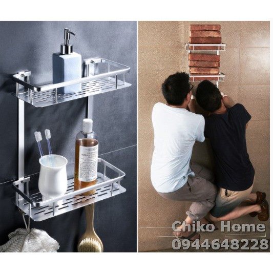Kệ nhà tắm hai tầng dán keo hoặc khoan vít#Kệ phòng tắm không cần khoan siêu chắc