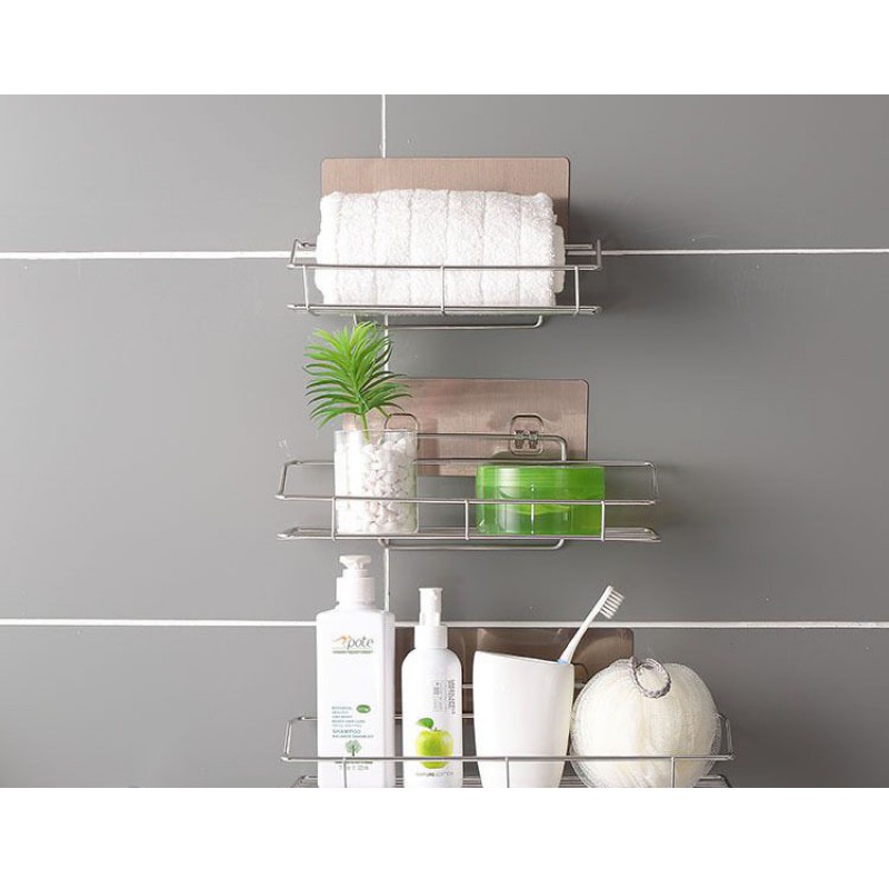 Nhà Cửa & Đời Sống > Đồ dùng phòng tắm > Kệ để đồ phòng tắm || Kệ Nhà Tắm Hình Chữ Nhật Dán Tường - Giá Để Đồ INOX Không Han RỉCòn hàng