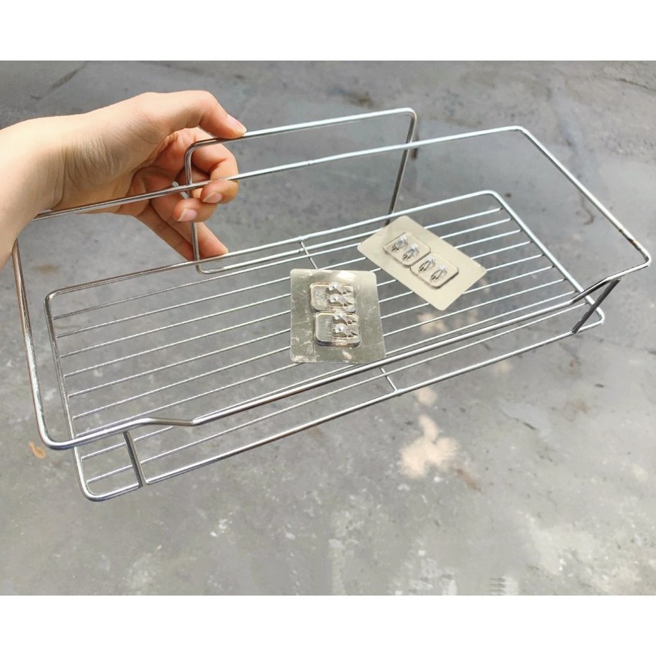 Kệ nhà tắm hình chữ nhật inox không gỉ dính tường siêu chắc không cần khoan đục tặng kèm 2 miếng dán