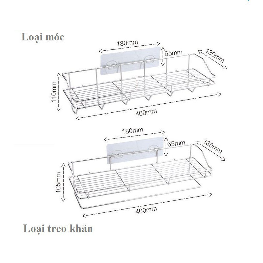 Kệ Nhà Tắm inox Dán Tường ,Giá Để Đồ Phòng Tắm Đa Năng Có Thanh Treo Khăn Hoặc Móc Treo Đồ Tiện Dụng