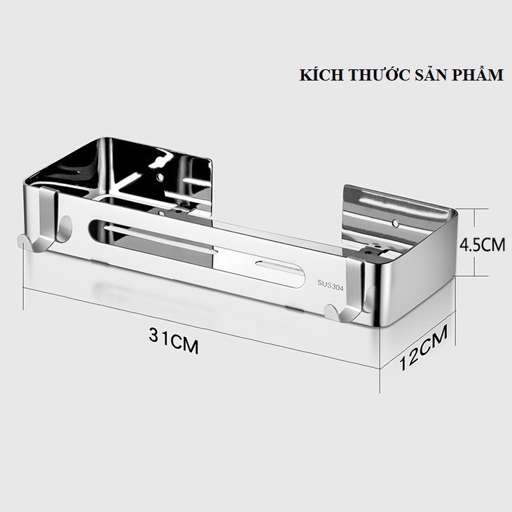 Kệ Nhà Tắm Inox SUS304 Dán tường Chữ Nhật 1 Tầng Cao Cấp - Không khoan đục, sang trọng, bền đẹp