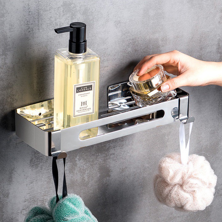 Nhà Cửa & Đời Sống > Đồ dùng phòng tắm > Kệ để đồ phòng tắm || Kệ Nhà Tắm Inox SUS304 Dán tường Chữ Nhật 1 Tầng Cao Cấp - Không khoan đục, sang trọng, bền đẹpCòn hàng