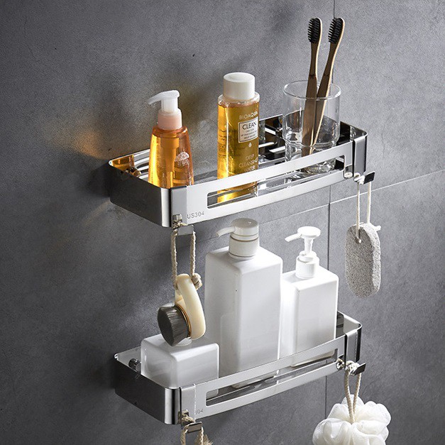 Nhà tắm và phòng bếp thường có rất nhiều đồ đạc, không gian lại hạn hẹp, vì vậy sẽ là khá bừa bộn nếu bạn không biết cách sắp xếp hợp lý. Để giải quyết vấn đề trên, một chiếc kệ nhà tắm Inox 304 sang trọng sẽ là giải pháp hữu hiệu cho nhà tắm hay góc bếp nhỏ xinh của gia đình bạn.Ưu điểm của sản phẩm Kệ Nhà Tắm INOX SUS304 Chữ Nhật 1 tầng:
