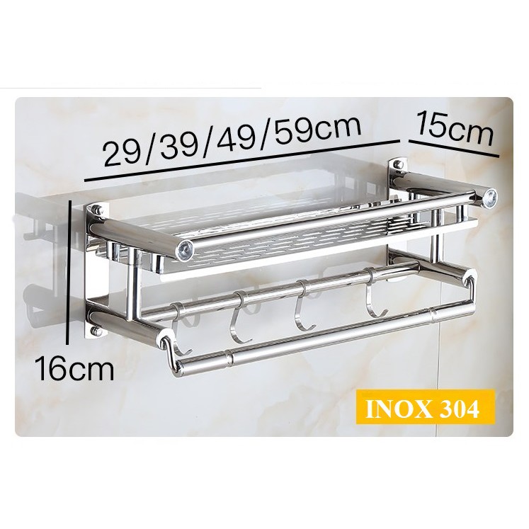 Nhà Cửa & Đời Sống > Đồ dùng phòng tắm > Giá, móc treo đồ nhà tắm || Kệ Nhà Tắm INOX SUS304 lắp đặt dính tường, Giá treo khăn phòng tắm lắp đặt dính tường không cần khoan - INOX2TCòn hàng