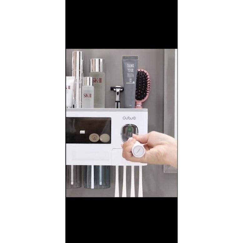 kệ nhà tắm tích hợp chức năng lấy kem tự động + Cốc hút từ tính ( loại 2/3/4 cốc) + miếng dán tường