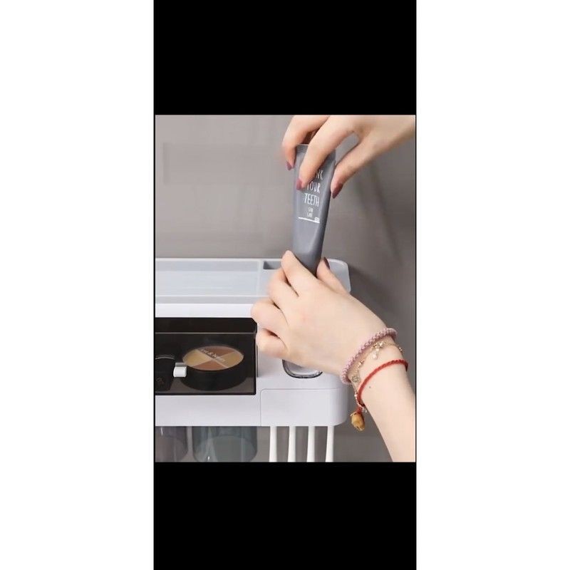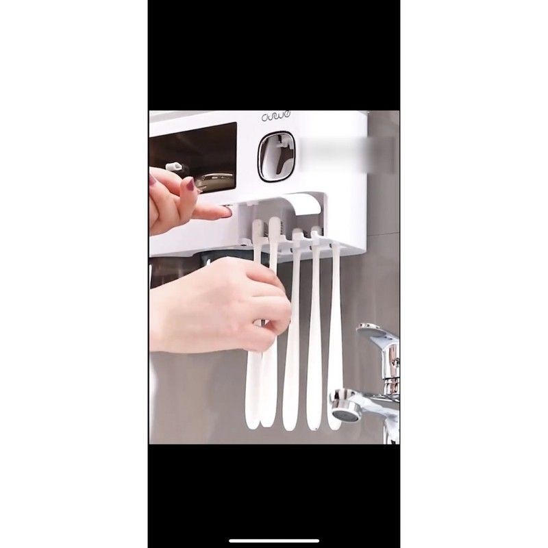 kệ nhà tắm tích hợp chức năng lấy kem tự động + Cốc hút từ tính ( loại 2/3/4 cốc) + miếng dán tường