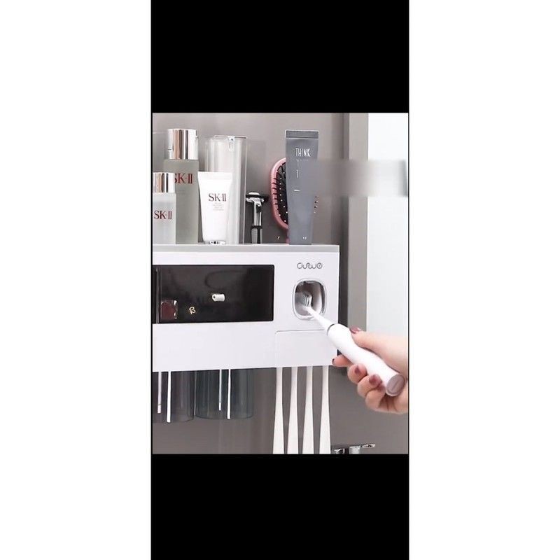kệ nhà tắm tích hợp chức năng lấy kem tự động + Cốc hút từ tính ( loại 2/3/4 cốc) + miếng dán tường