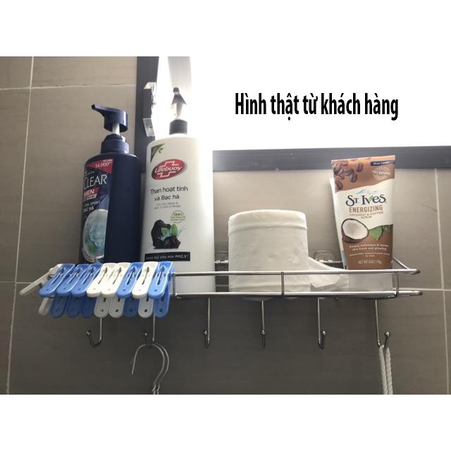 Kệ Nhà Tắm, Kệ Đựng Đồ Phòng Tắm Inox 304 Sáng Bóng Kèm Giá Treo Khăn Và Móc Treo Đồ Thông Minh