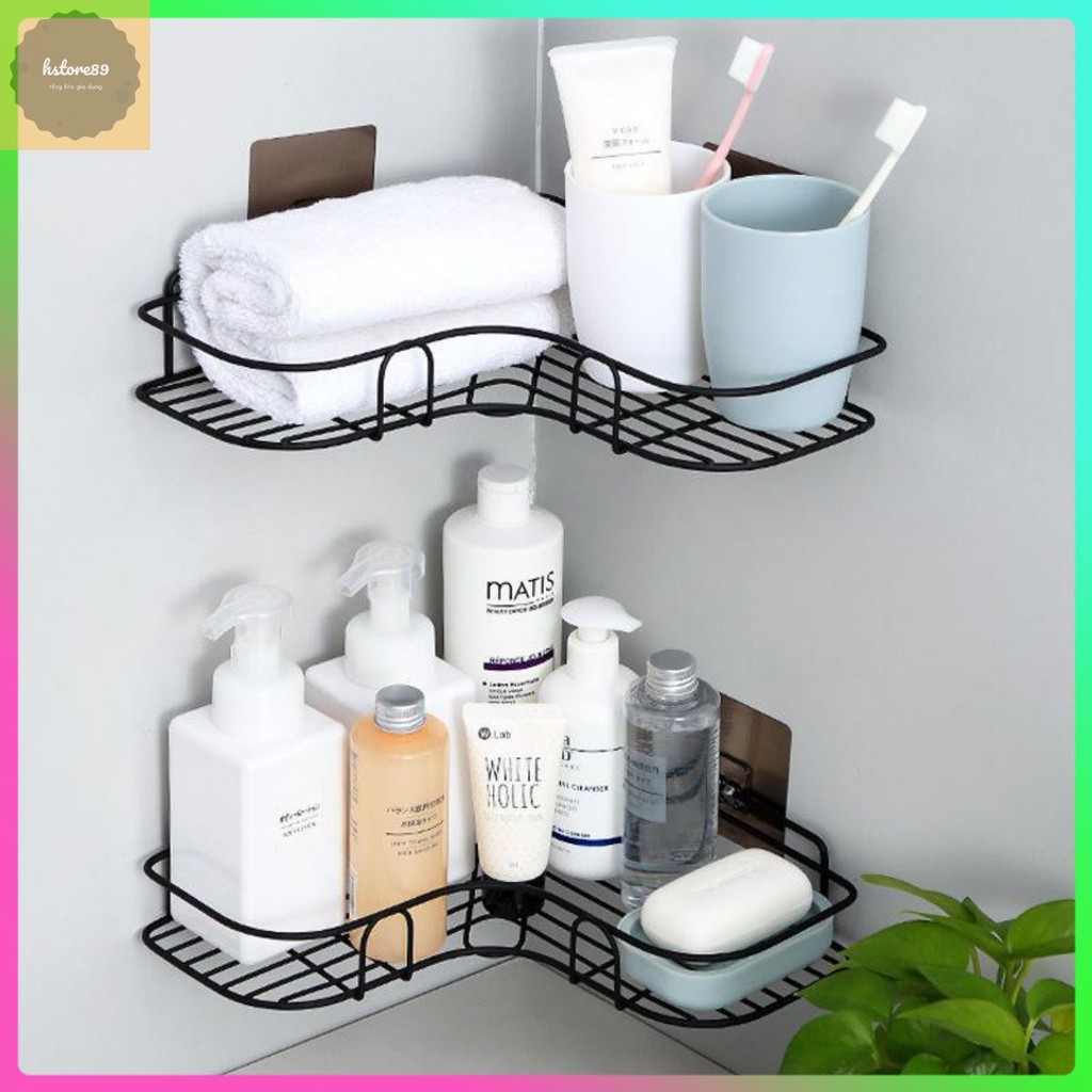 kệ nhà tắm , kệ góc dán tường bằng sắt phủ lớp nhựa không gỉ siêu chắc chắn đồ dung nhà bếp tiện ích thông minh giá rẻ