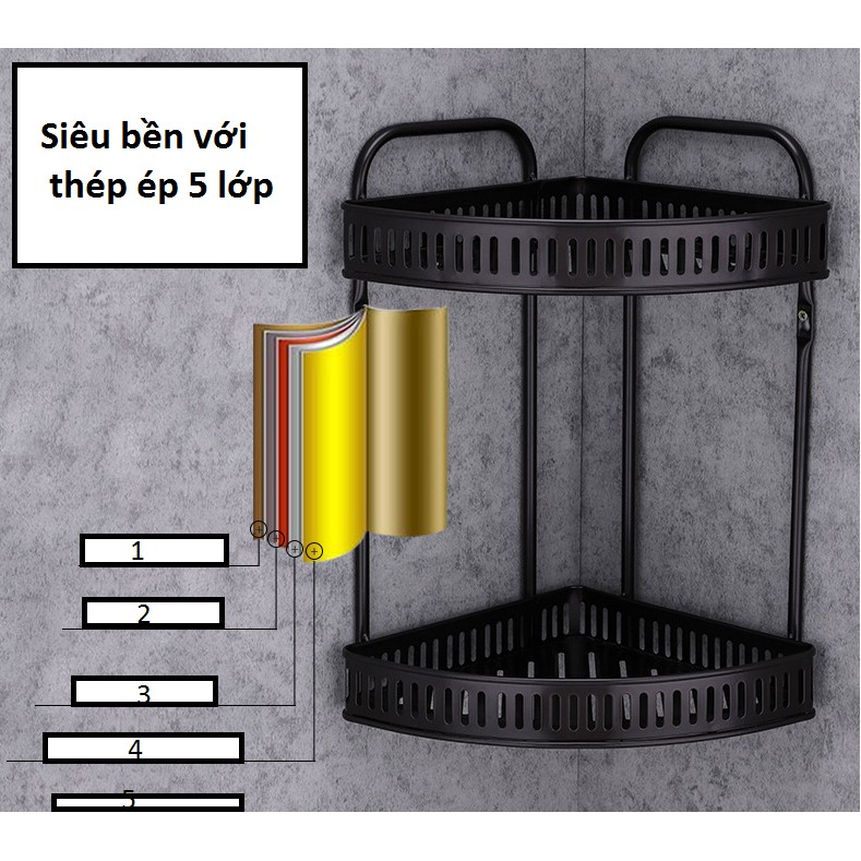 ✦ Kệ góc nhà tắm được sản xuất bằng 100% thép siêu cứng với công nghệ ép 05 lớp. Giúp sản phẩm luôn đạt được sự cứng cáp và chắc chắn